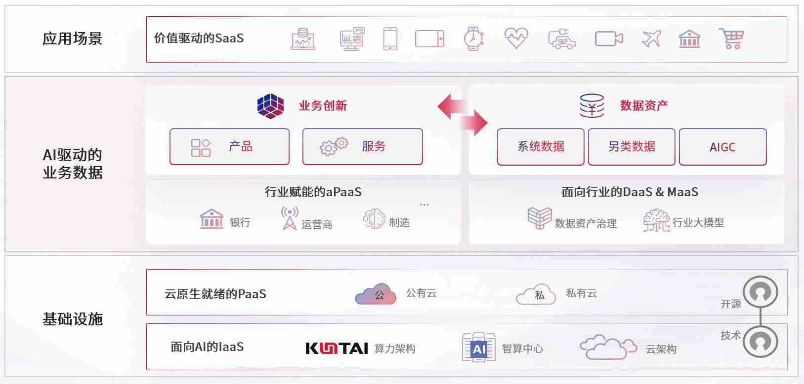 数字时代,,围绕企业数字化转型的关键要素,,,kdpay数码开创性的提出数云融合战略和技术体系框架,,着力在云原生、、数字原生、、、、AI原生和信创产业上架构产品和服务能力,,为处在不同数字化转型阶段的快消零售、、、、汽车、、、、金融、、、、医疗、、、政企、、、教育、、运营商等行业客户提供泛在的敏捷IT能力和融合的数据驱动能力,,构建跨界融合创新的数字业务场景和新业务模式,,,助力企业级客户建立面向未来的核心能力和竞争优势,,,,全面推动社会的数字化、、、、智能化转型升级。。